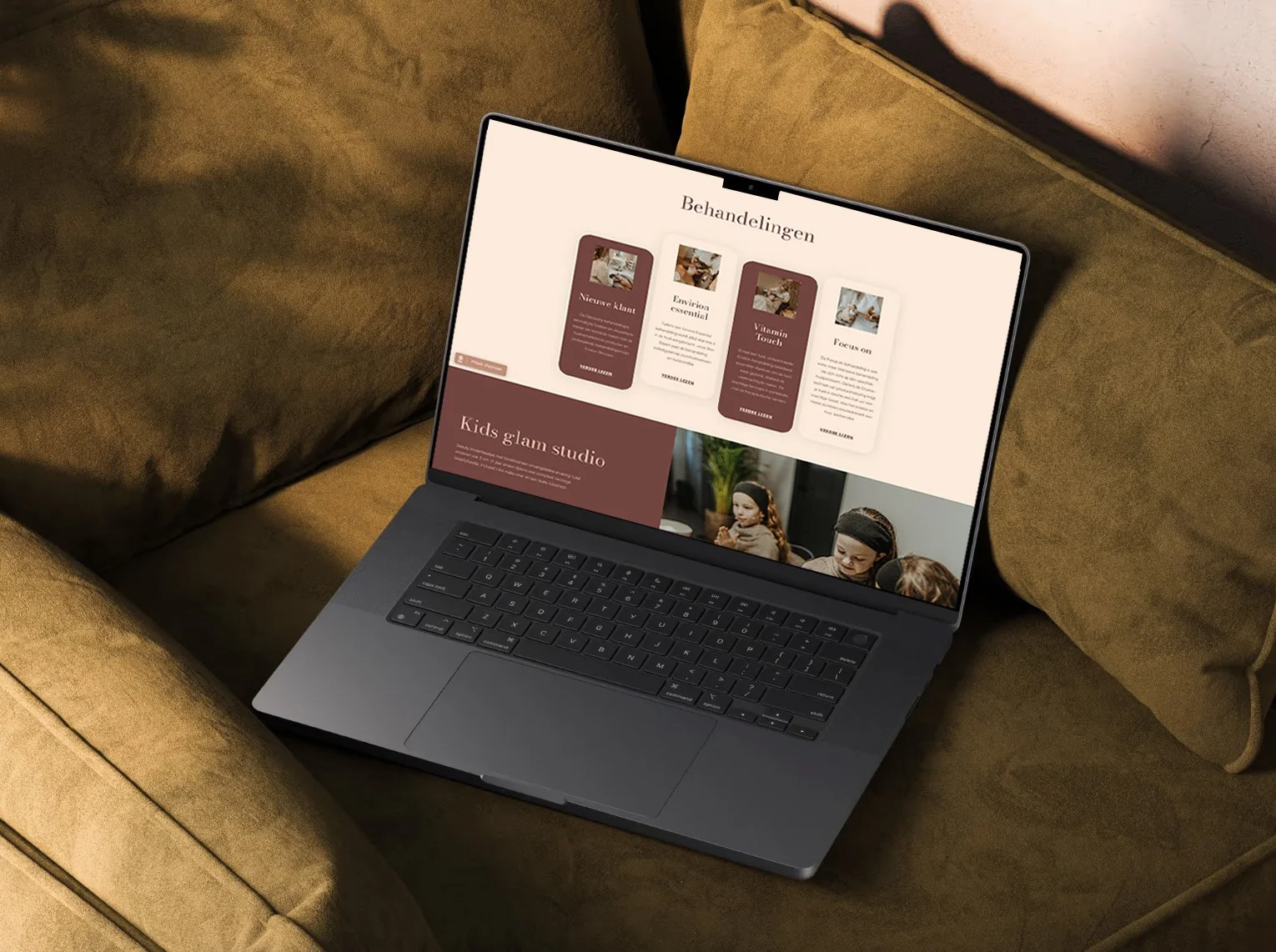 Naast de branding heb ik ook de website ontworpen en gerealiseerd, waarbij de visuele identiteit is doorvertaald naar een overzichtelijke en sfeervolle online omgeving die perfect aansluit bij de salon.